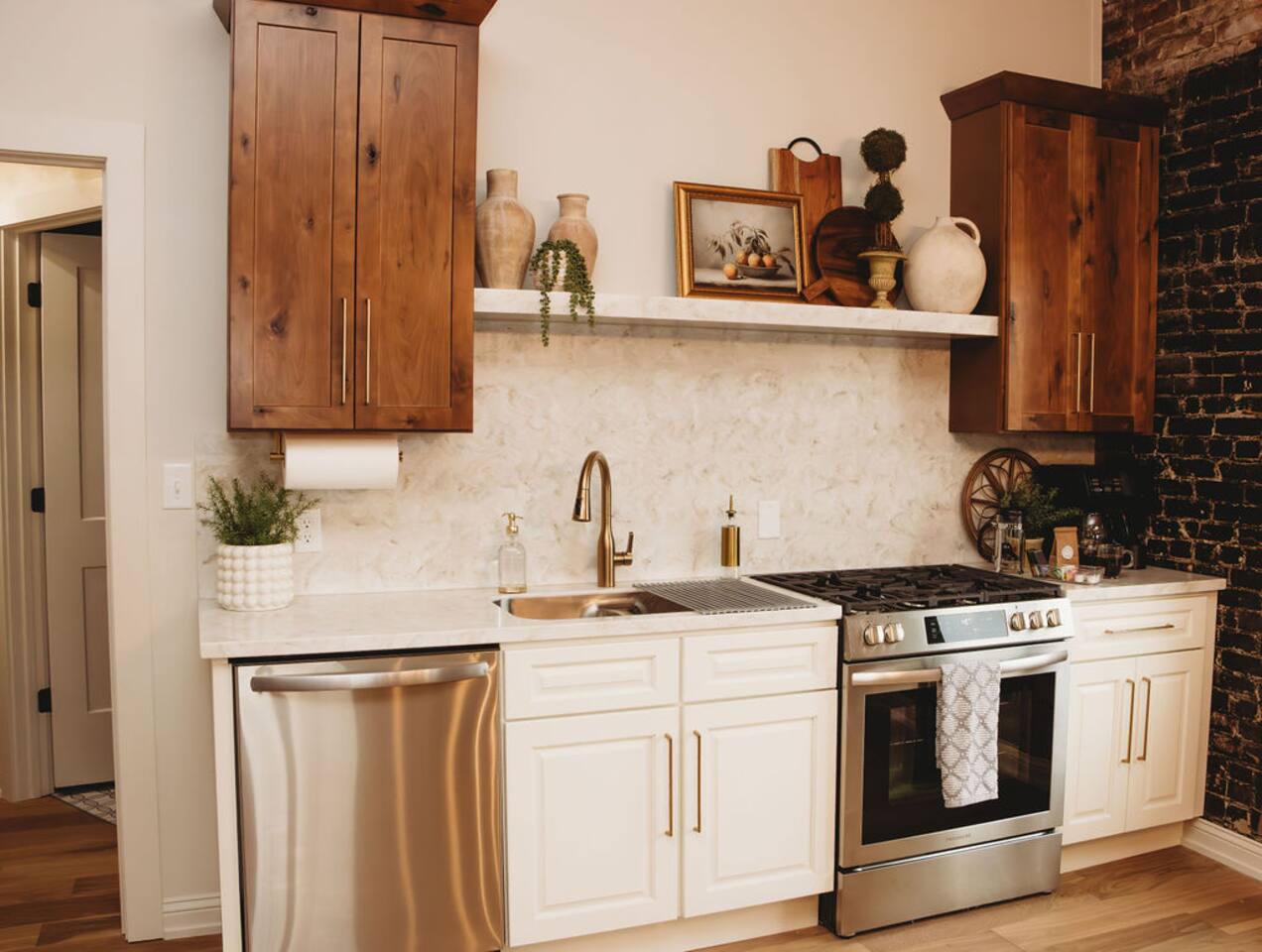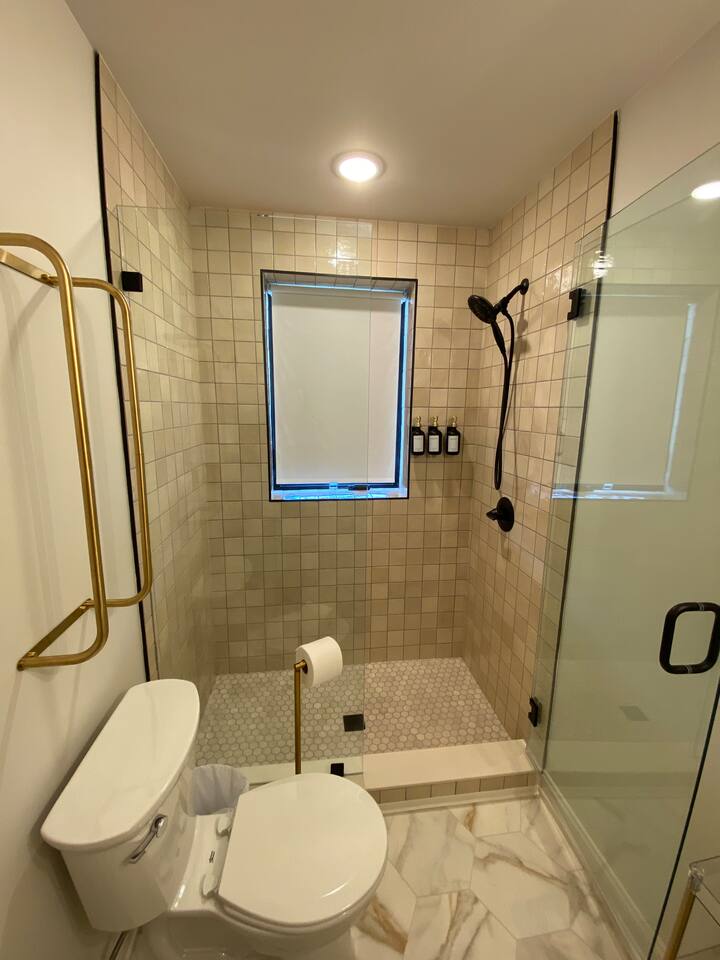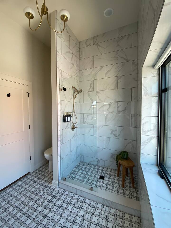 Completely remodeled from 2021 - 2024, this 22,000 square feet historical building is centered in the heart of downtown Leitchfield. Our location makes it walkable to boutiques, food, entertainment, the Storehouse Coffee, the Spa on Main & the Historic Jack Thomas House. In 1935, this building housed a restaurant, The Alice Theatre and a 23-room hotel called The Alexander Hotel. Today, this building is still home to The Alexander Hotel, which is now 7 short term rentals, The Alice Theatre which is now an event venue where you can enjoy live entertainment, old movies or rent the space for a special day or event of your own. The old restaurant has been revitalized and is now called Steak & Stone. (Both the Restaurant & Event Venue are set to be open Mid-May 2024). Each Airbnb has been meticulously curated and designed. Our space is unique in that you can rent a suite or two or our entire 2nd floor which contains 7 suites total: The Aaron (2 bed / 2 bath), The Ashton (1 bed / 1 bath), The Jackson (Studio / 1 bed / 1 bath / + Sofa Sleeper), The Haleigh (1 bed / 1 bath), The McKinzie (2 bed / 2 bath), The Chassedi (Studio / 1 bed / 1 bath), The Eleanor (2 bed / 2 bath). NOTE: Our suites are located on the 2nd floor with approximately 25 steps. Due to the historic nature and location of our building, elevators are not available. During your stay, you will have access to our local parks, lakes, kayaking, Leitchfield softball and baseball complex, pickleball courts, grocery stores & our revitalized town square. The Alexander Hotel is the prime location for East Main Market nights and the annual Twin Lakes Fiddling Festival. We are nestled between Rough River & Nolin Lake & only minutes from the Leitchfield Aquatic Center, Industrial Park & Owensboro Twin Lakes Regional Medical Center. We are 30 minutes from The Bluegrass Sportsplex, Sky's the Limit Trampoline Park, numerous golf courses including: Shady Hollow, Lafeyette, Vine Grove, Elizabethtown Country Club & Heartland Golf Course. We are also less than an hour from Mammoth Cave National Park, The Bowling Green Corvette Museum, Churchill Downs, and the Bourbon Capital of the World, Bardstown. We are 2 minutes away from the Western Ky Pkwy and 30 minutes away from I-65. If small town with big city vibes sounds like a good time, then we are the right place for you. The Eleanor offers a roomy main living area, fully equipped kitchen, 3 smart TVs, 2 King plush and comfy beds, 2 full bathrooms that include floor to ceiling tiled showers, and modern appliances.