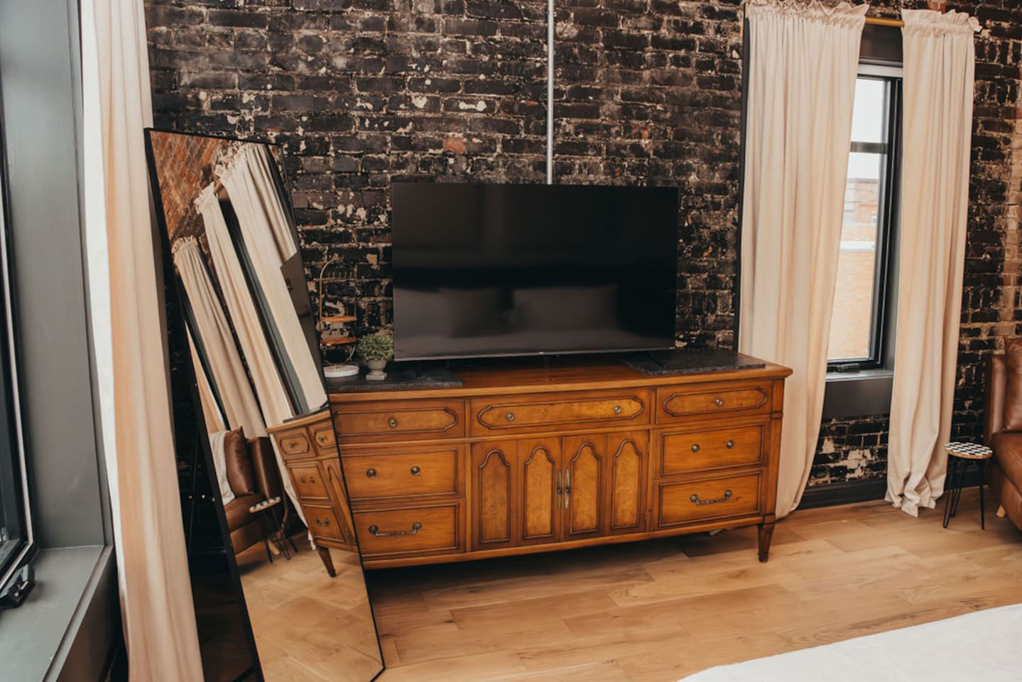 Completely remodeled from 2021 - 2024, this 22,000 square feet historical building is centered in the heart of downtown Leitchfield. Our location makes it walkable to boutiques, food, entertainment, the Storehouse Coffee, the Spa on Main & the Historic Jack Thomas House. In 1935, this building housed a restaurant, The Alice Theatre and a 23-room hotel called The Alexander Hotel. Today, this building is still home to The Alexander Hotel, which is now 7 short term rentals, The Alice Theatre which is now an event venue where you can enjoy live entertainment, old movies or rent the space for a special day or event of your own. The old restaurant has been revitalized and is now called Steak & Stone. Each Airbnb has been meticulously curated and designed. Our space is unique in that you can rent a suite or two or our entire 2nd floor which contains 7 suites total: The Aaron (2 bed / 2 bath), The Ashton (1 bed / 1 bath), The Jackson (Studio / 1 bed / 1 bath / + Sofa Sleeper), The Haleigh (1 bed / 1 bath), The McKinzie (2 bed / 2 bath), The Chassedi (Studio / 1 bed / 1 bath), The Eleanor (2 bed / 2 bath). NOTE: Our suites are located on the 2nd floor with approximately 25 steps. Due to the historic nature and location of our building, elevators are not available. During your stay, you will have access to our local parks, lakes, kayaking, Leitchfield softball and baseball complex, pickleball courts, grocery stores & our revitalized town square. The Alexander Hotel is the prime location for East Main Market nights and the annual Twin Lakes Fiddling Festival. We are nestled between Rough River & Nolin Lake & only minutes from the Leitchfield Aquatic Center, Industrial Park & Owensboro Twin Lakes Regional Medical Center. We are 30 minutes from The Bluegrass Sportsplex, Sky's the Limit Trampoline Park, numerous golf courses including: Shady Hollow, Lafeyette, Vine Grove, Elizabethtown Country Club & Heartland Golf Course. We are also less than an hour from Mammoth Cave National Park, The Bowling Green Corvette Museum, Churchill Downs, and the Bourbon Capital of the World, Bardstown. We are 2 minutes away from the Western Ky Pkwy and 30 minutes away from I-65. If small town with big city vibes sounds like a good time, then we are the right place for you. The McKinzie offers a roomy main living area, fully equipped kitchen, 3 smart TVs, 2 King plush and comfy beds, 2 sleeper chairs, 2 full bathrooms that include floor to ceiling tiled showers, modern appliances and it is our biggest unit coming in at 1550 square feet.